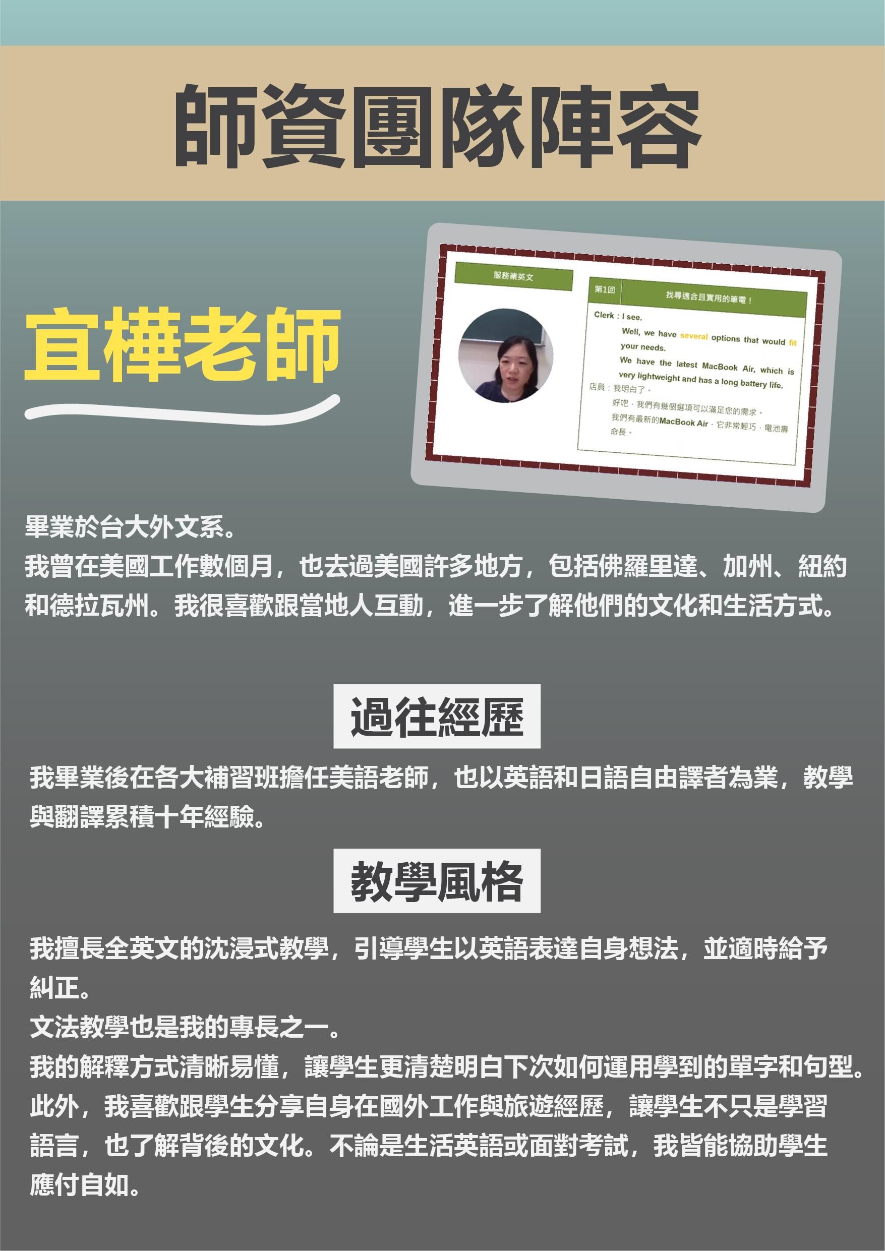 文法涵蓋了服務業中常用的英語文法。文法表中包含文法的概念、例句、和練習。