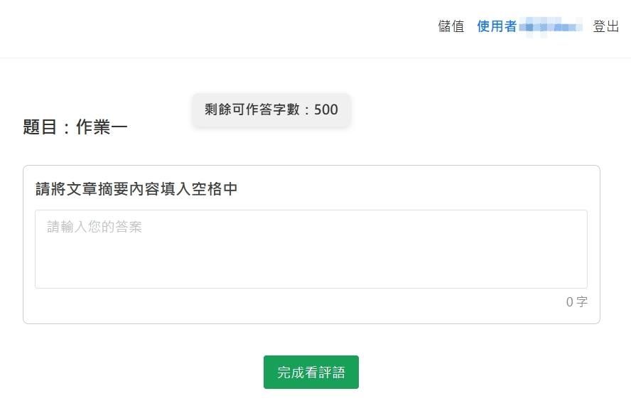(4)開始作答,將申論寫作內容填入空格中,內容完成點選「完成看評語」。