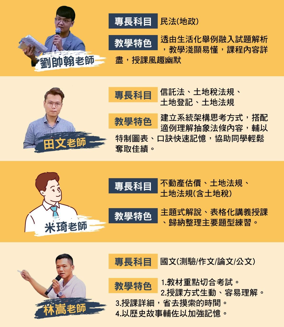 地政士+不動產經紀人 | 師資 | 預定堂數 | 預計開課日期 |
