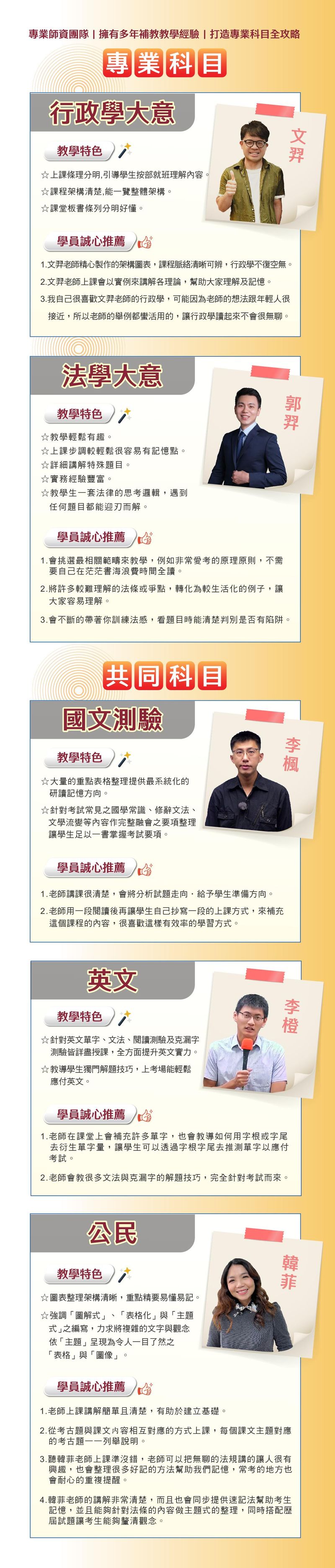 備註:高效函授擁有課程、師資異動之權利,將視課程需要調整。考科若有異動以考試單位公告為主。