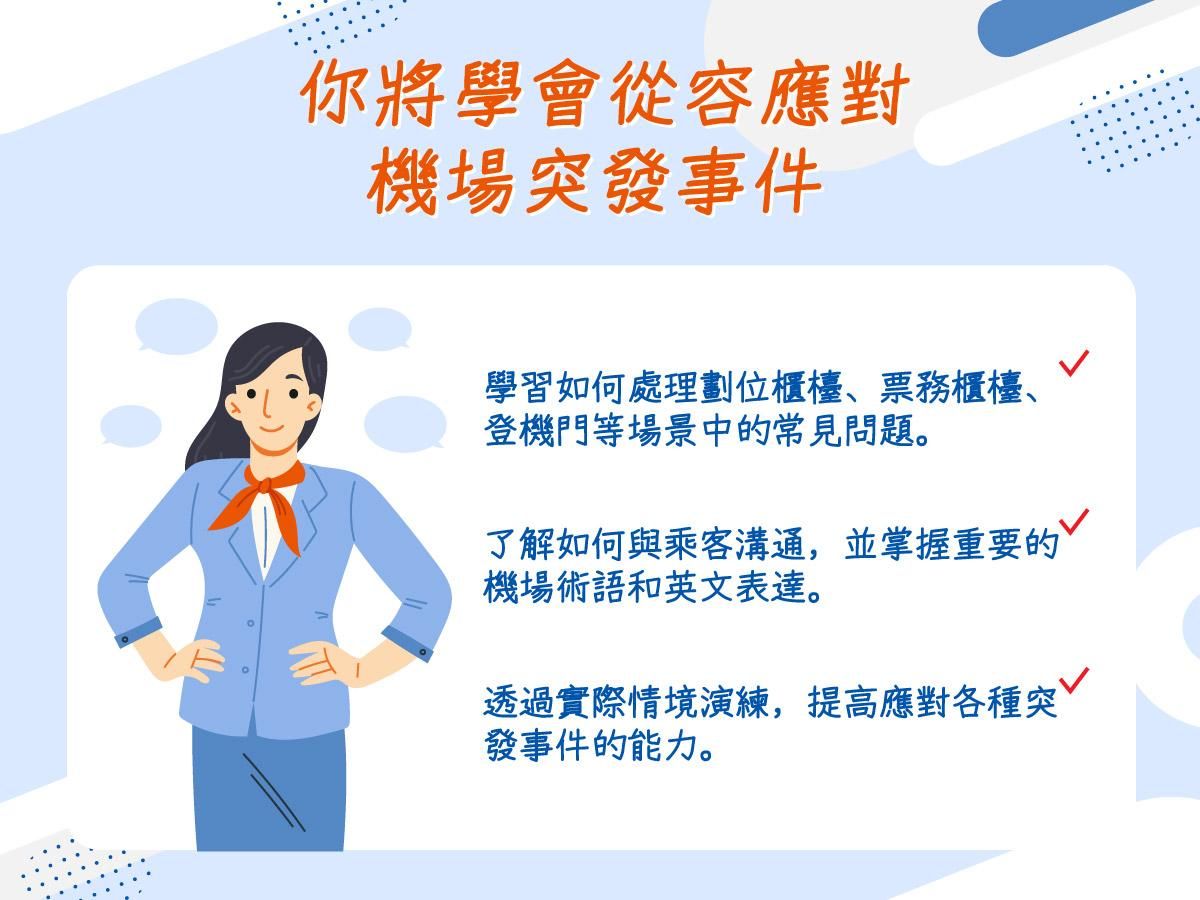 透過實境情境和英文對話了解航空地勤工作實境,從出境到入境各個環節,處理乘客問題的技巧和應對策略。關鍵字包括劃位櫃檯、票務櫃檯、登機門、入境審查等,幫助您更好地應對各種情況。