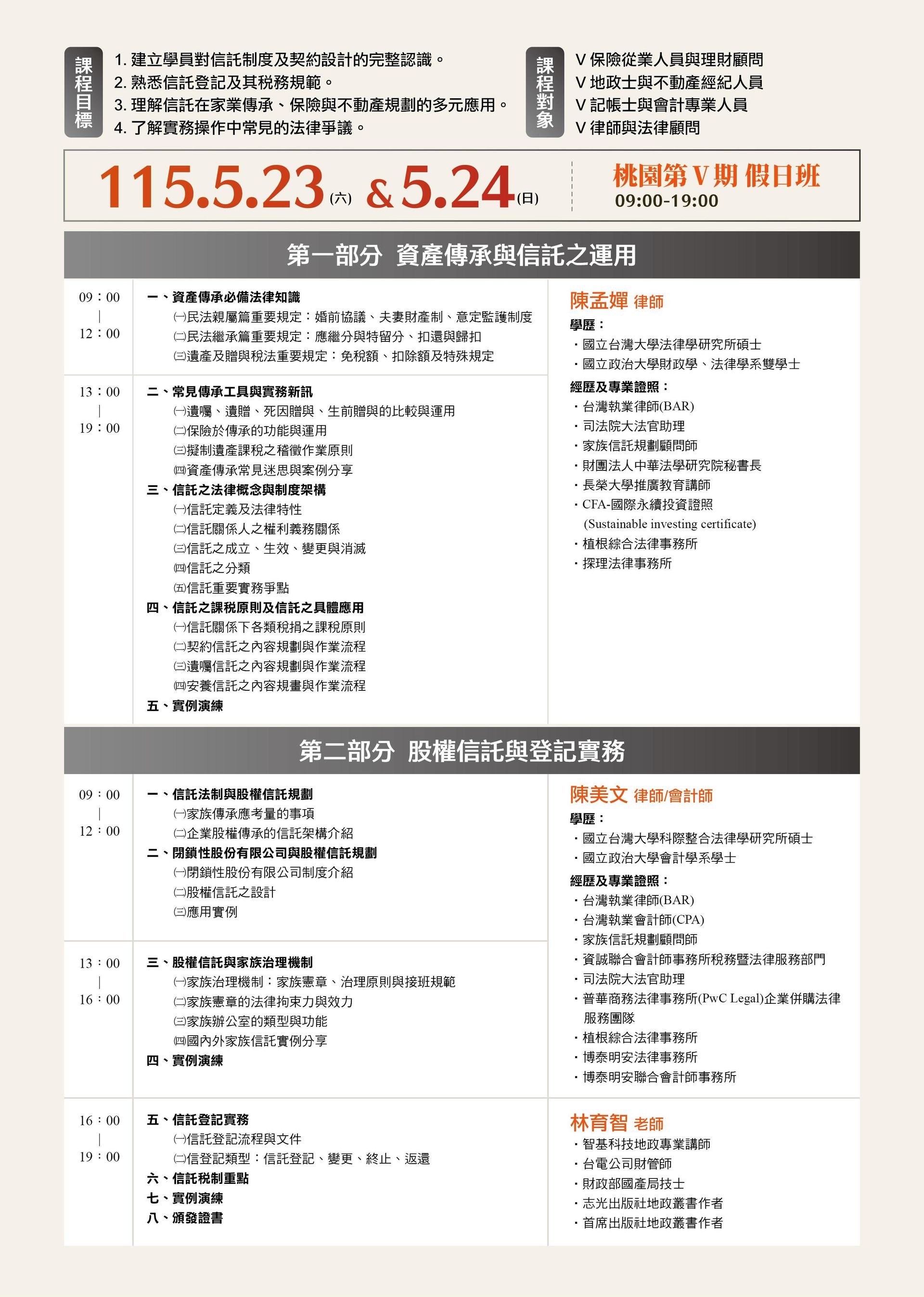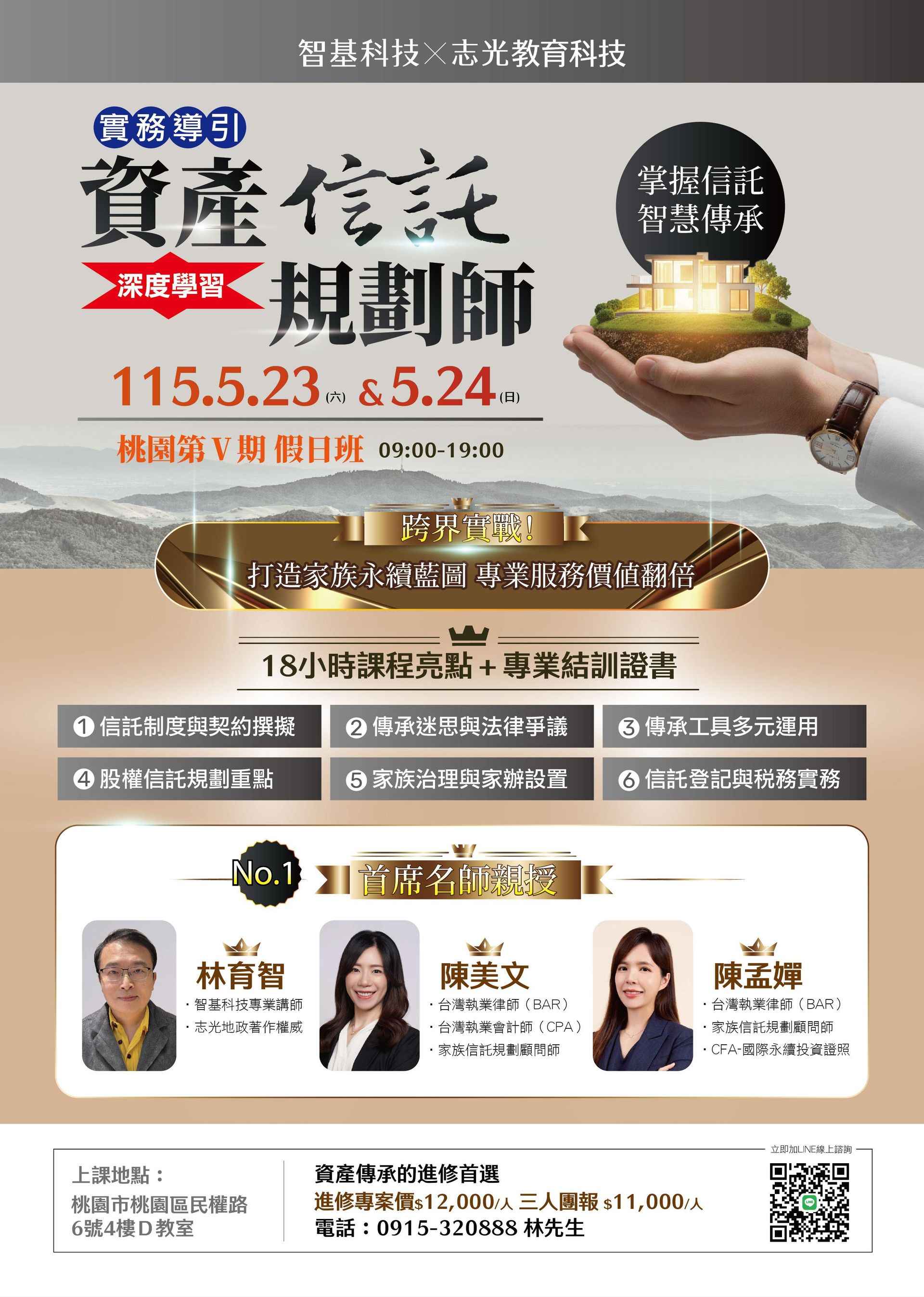 05/23-05/24桃園Ⅴ期-資產信託規劃師【家業傳承 x 信託實務】 好評加開