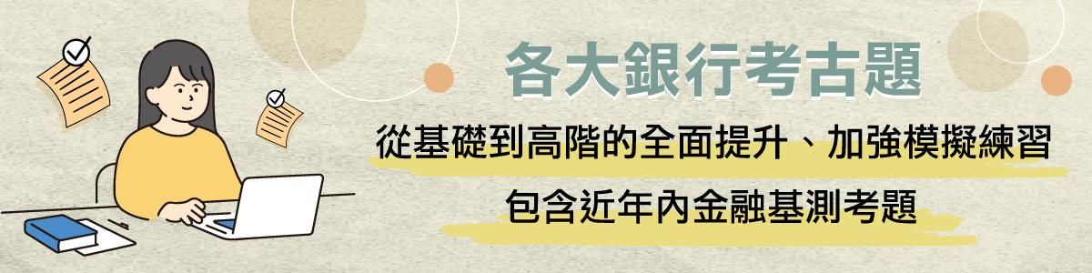 銀行考試非常重要的一點是要掌握歷年試題的命題趨勢和考點,我們精心整理的免費試題和詳盡解答,絕對能協助您循序漸進地進行練習,穩紮穩打地提升您的應試能力!