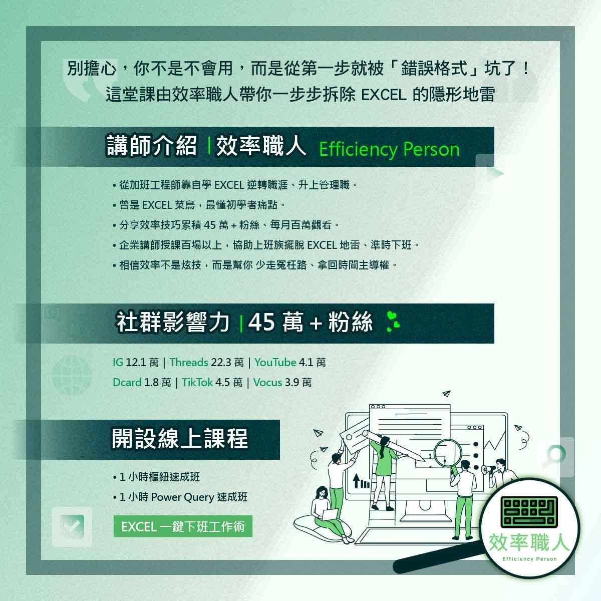 【 效率職人線上講座 】 EXCEL 職場避雷術:辦公室最常見的 5 大地雷