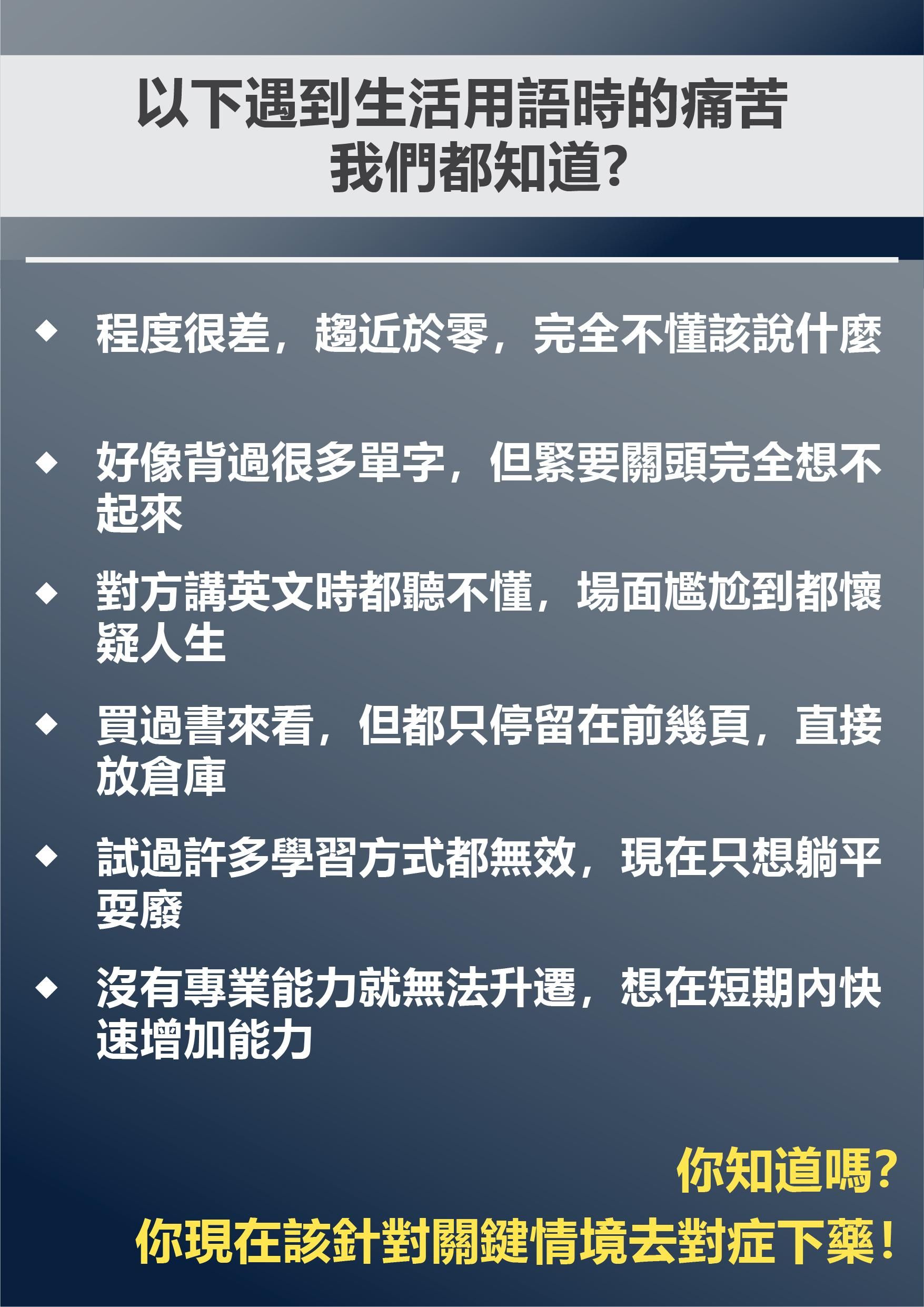 - 實際應用的課文和單字:讓你在學習片語的同時,也能擴充日常生活英語詞彙。