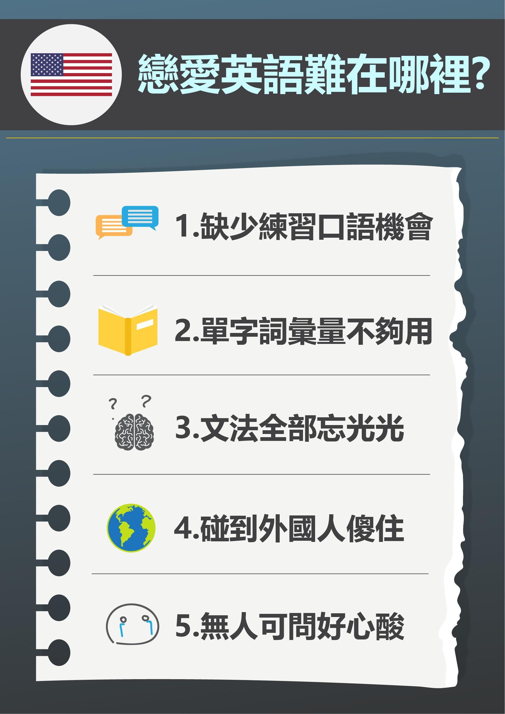 文法涵蓋了台灣旅遊中常用的英語文法。文法表中包含文法的概念、例句,和練習。