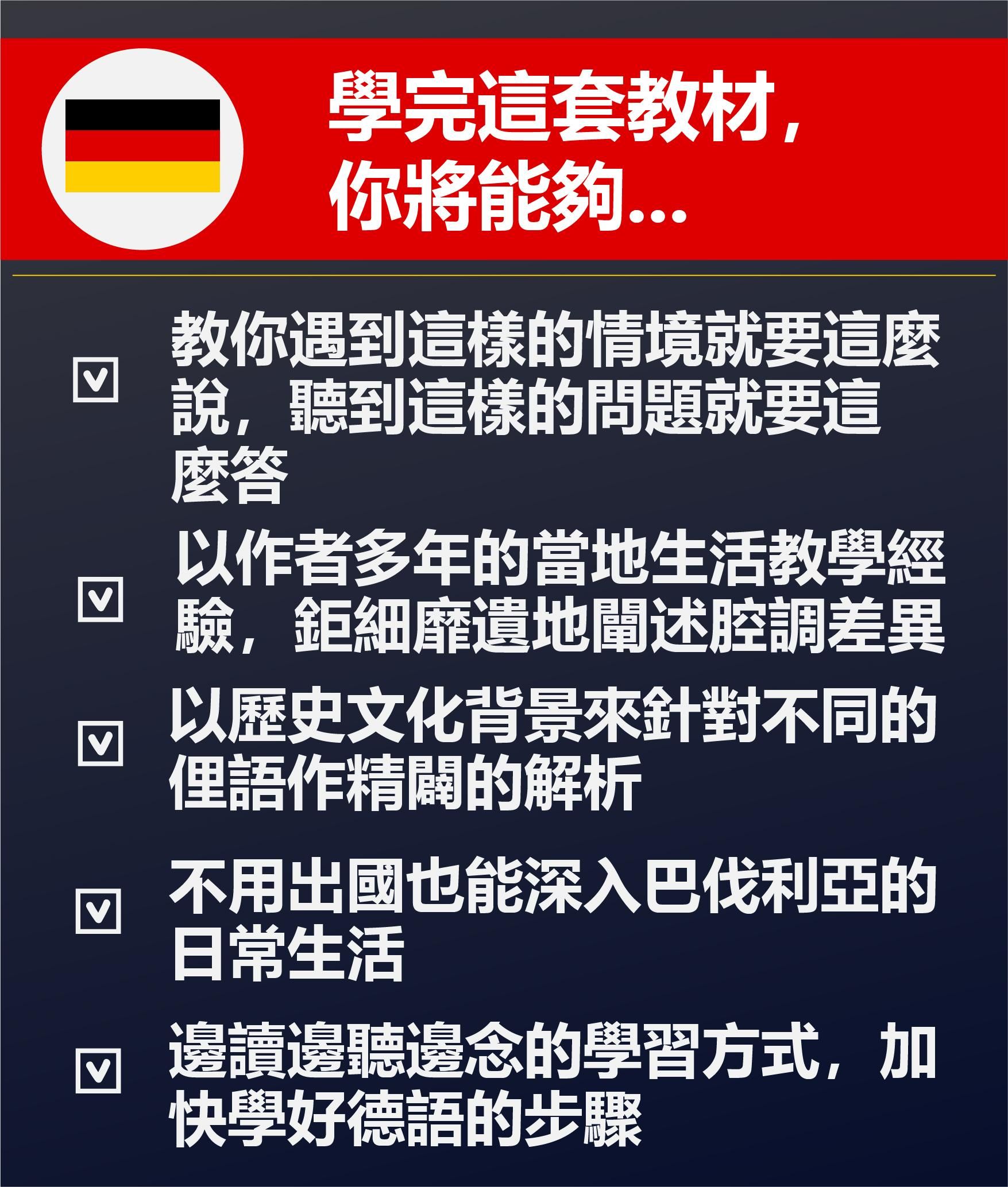 巴伐利亞腔德語,是一套專門針對巴伐利亞腔德語的課程。課程包含 8 個單元,每個單元包含一個課文、單字、文法、和練習。