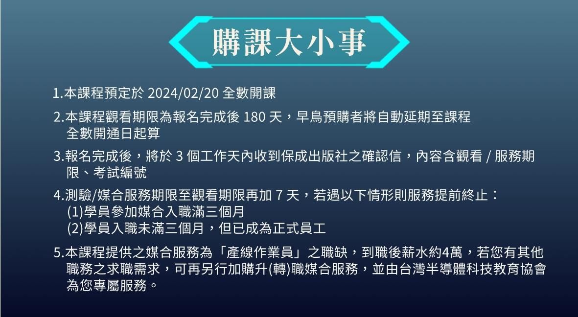 學員購買課程後,台灣半導體科技教育協會會跟你聯繫,協助開通測驗權限