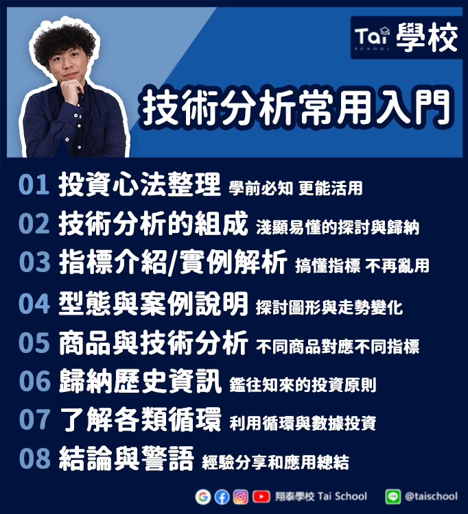 本課程將以「專業投資人」的邏輯思維,讓你搞懂「技術分析」的訣竅,利用過往「系統化」的教學架構,盤點股市、匯市、債市、原物料、ETF與各階段盤勢和風險控管所需的必備知識,將20多年來的投資經驗濃縮,用實戰案例教學與指導。