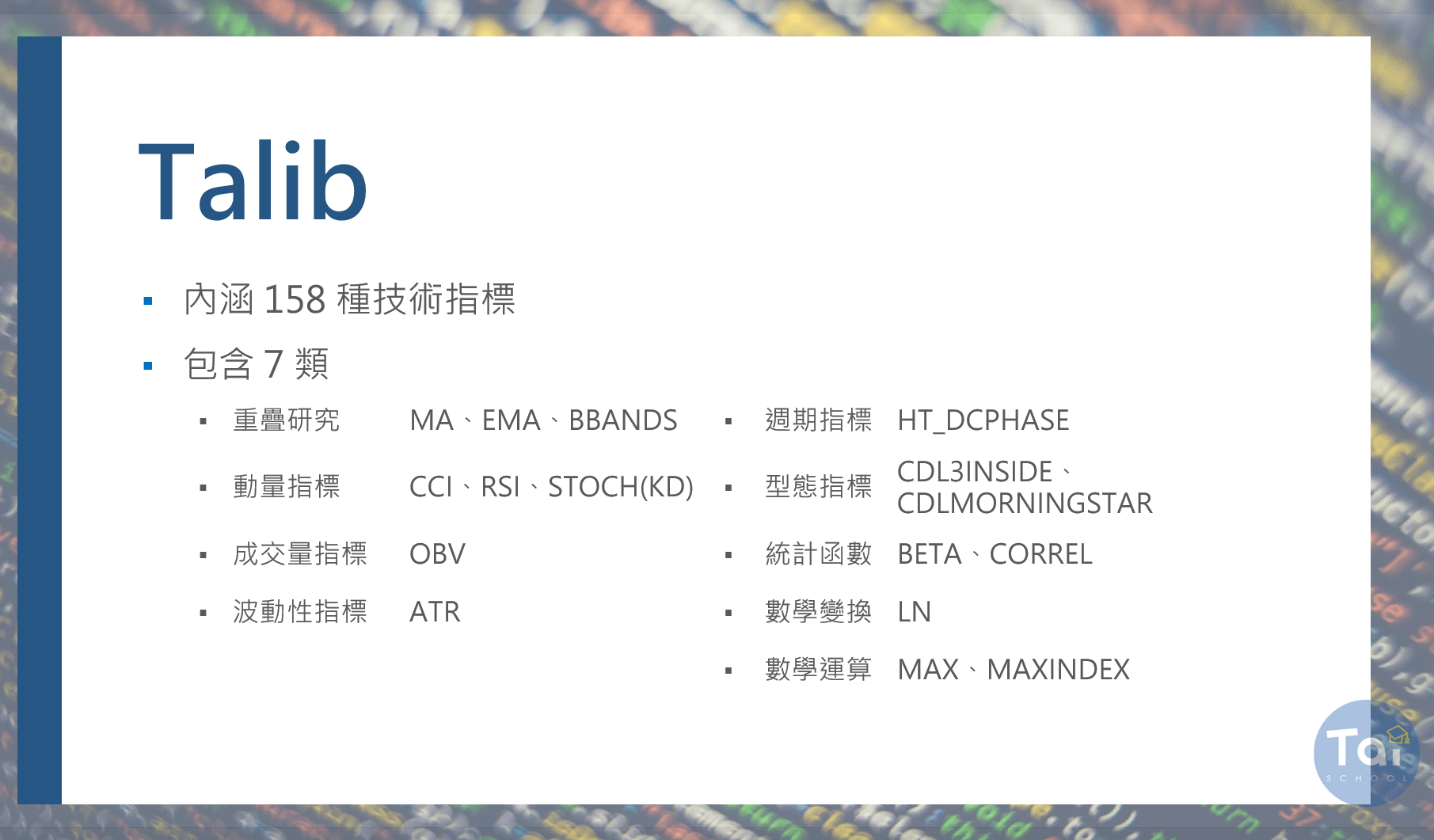 本課程專門設計給對科學方法投資有興趣的朋友,本次課程為基礎篇,設計給第一次接觸Python的人。課程採取一站式教學方法,透過從觀念到實例操作一次搞定, 讓你不但能建立自己完整的投資系統,也能了解程式交易者的思維,避免掉入各種致命盲點喔!
