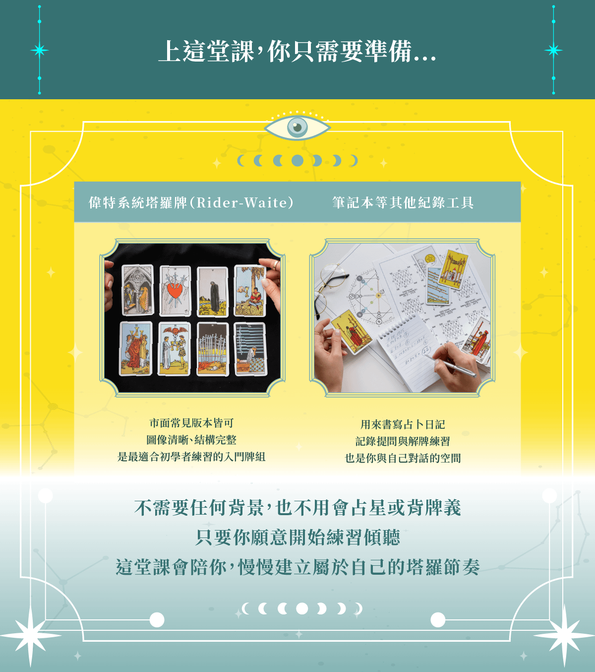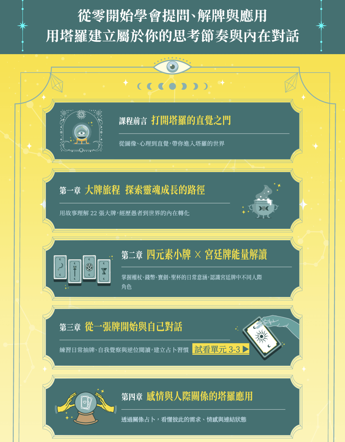 一堂為初學者設計的直覺式塔羅課,從提問到解牌,帶你看見內在、釐清關係、做出選擇,讓塔羅成為你的心理地圖。