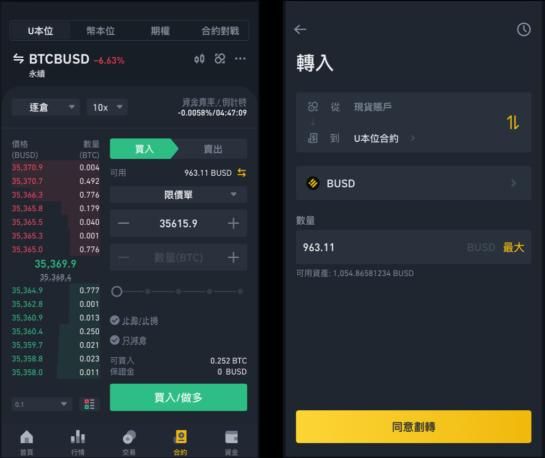首先我們先開啟幣安 APP,點選下方右邊第二個「合約」,進入到買賣的操作畫面。